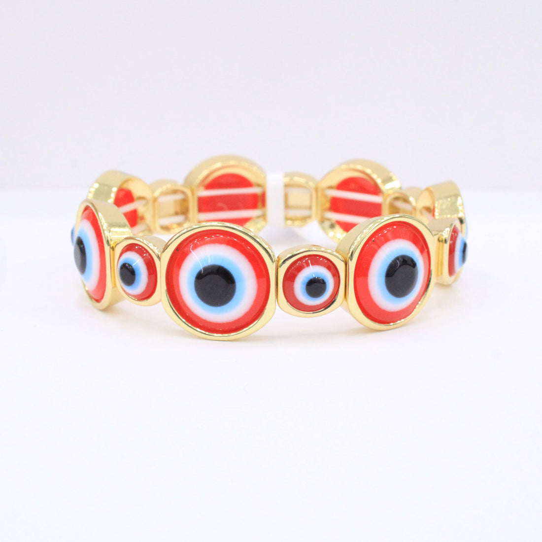 CARACTERÍSTICAS: Pulsera de aro con eslabones de ojo turco color rojo. Goldfiled fino de alta...