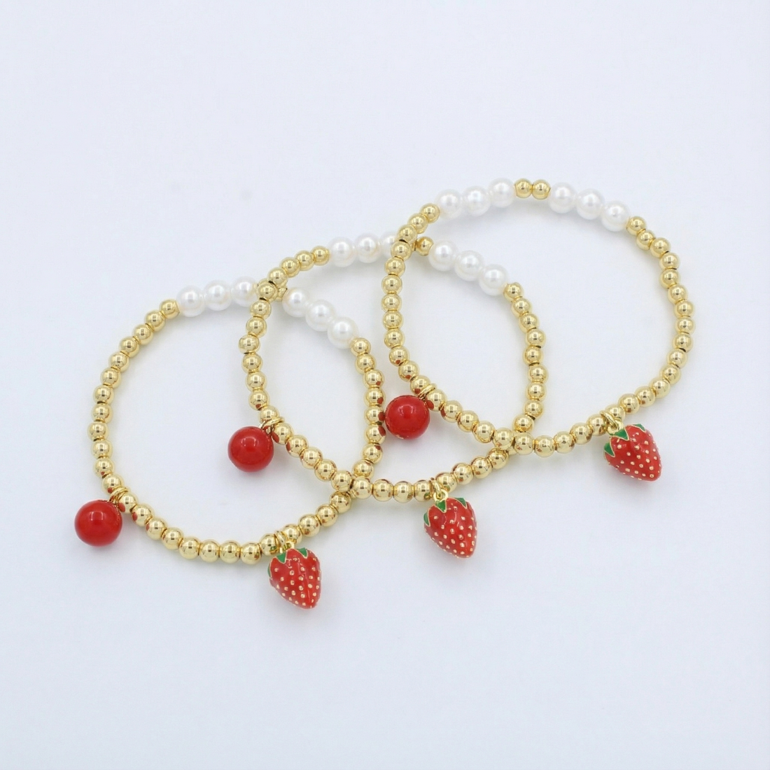 Paquete Pulsera Goldfilled 3pz Fresa mod. 13042