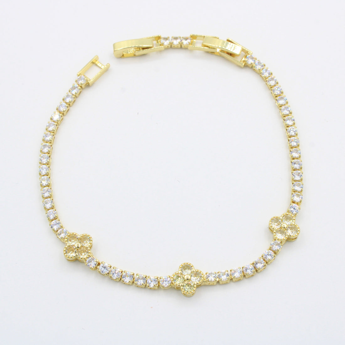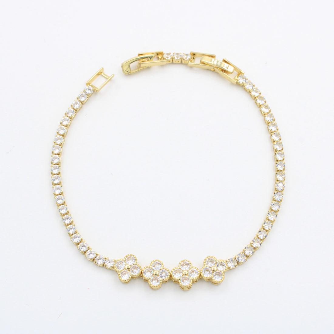 CARACTERÍSTICAS: Pulsera con diseño de trébol. Goldfiled fino de alta calidad y durabilidad. Incrustación de...
