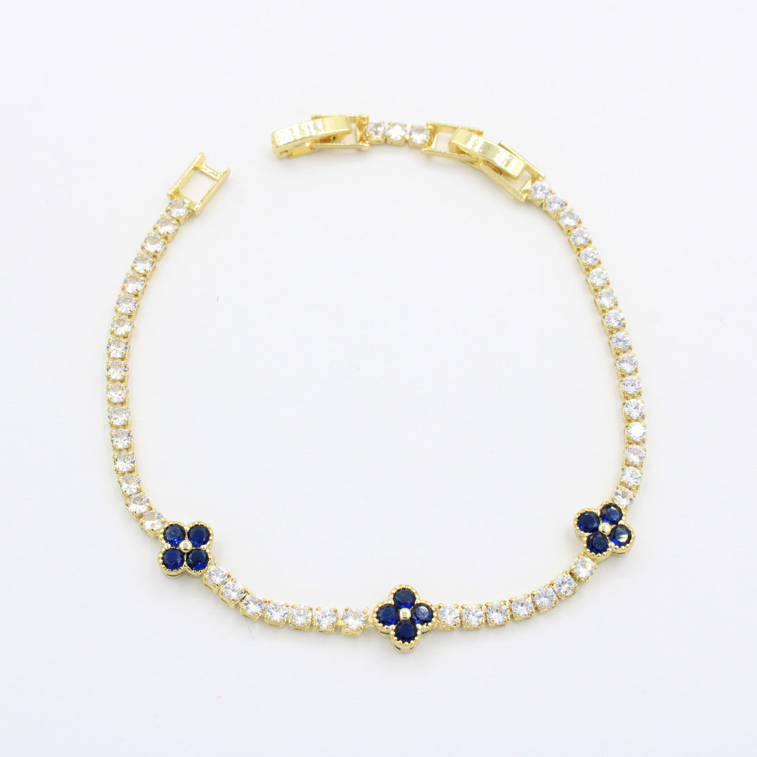 CARACTERÍSTICAS: Pulsera aqua con tréboles oscuros. Goldfiled fino de alta calidad y durabilidad. Incrustación de...