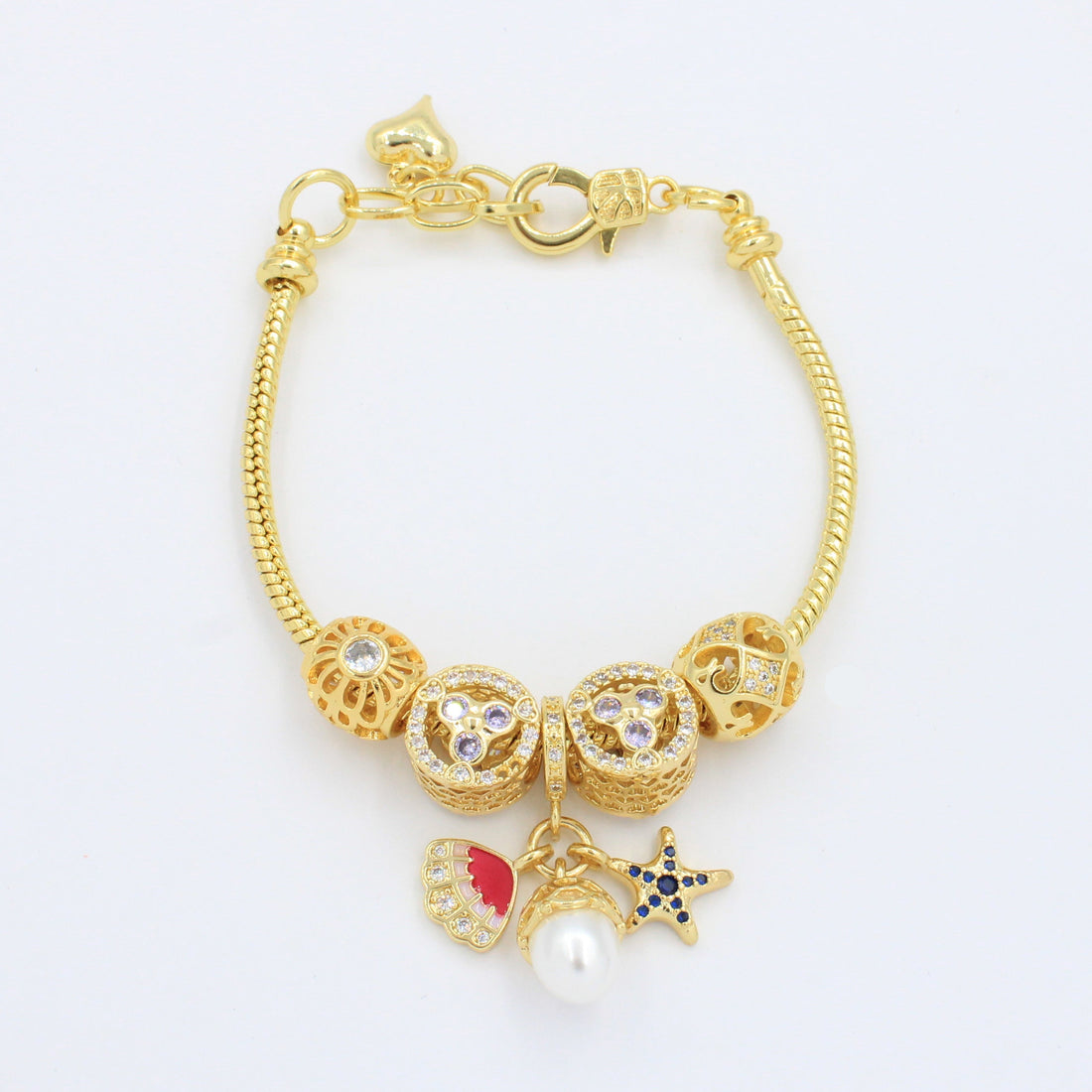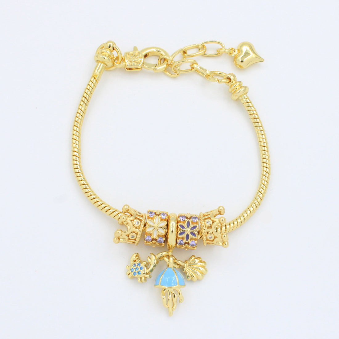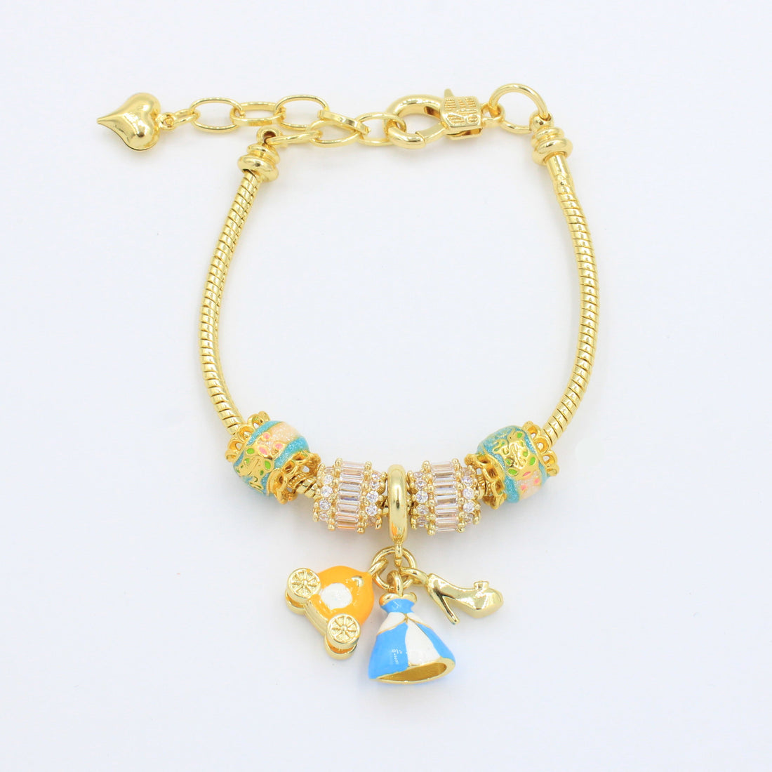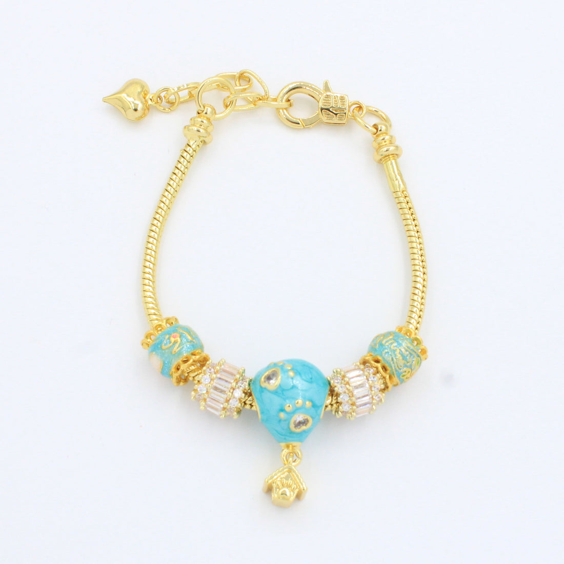CARACTERÍSTICAS: Pulsera tejido cola de rata con dijes estilo charm y piedras brillantes. Goldfiled fino...