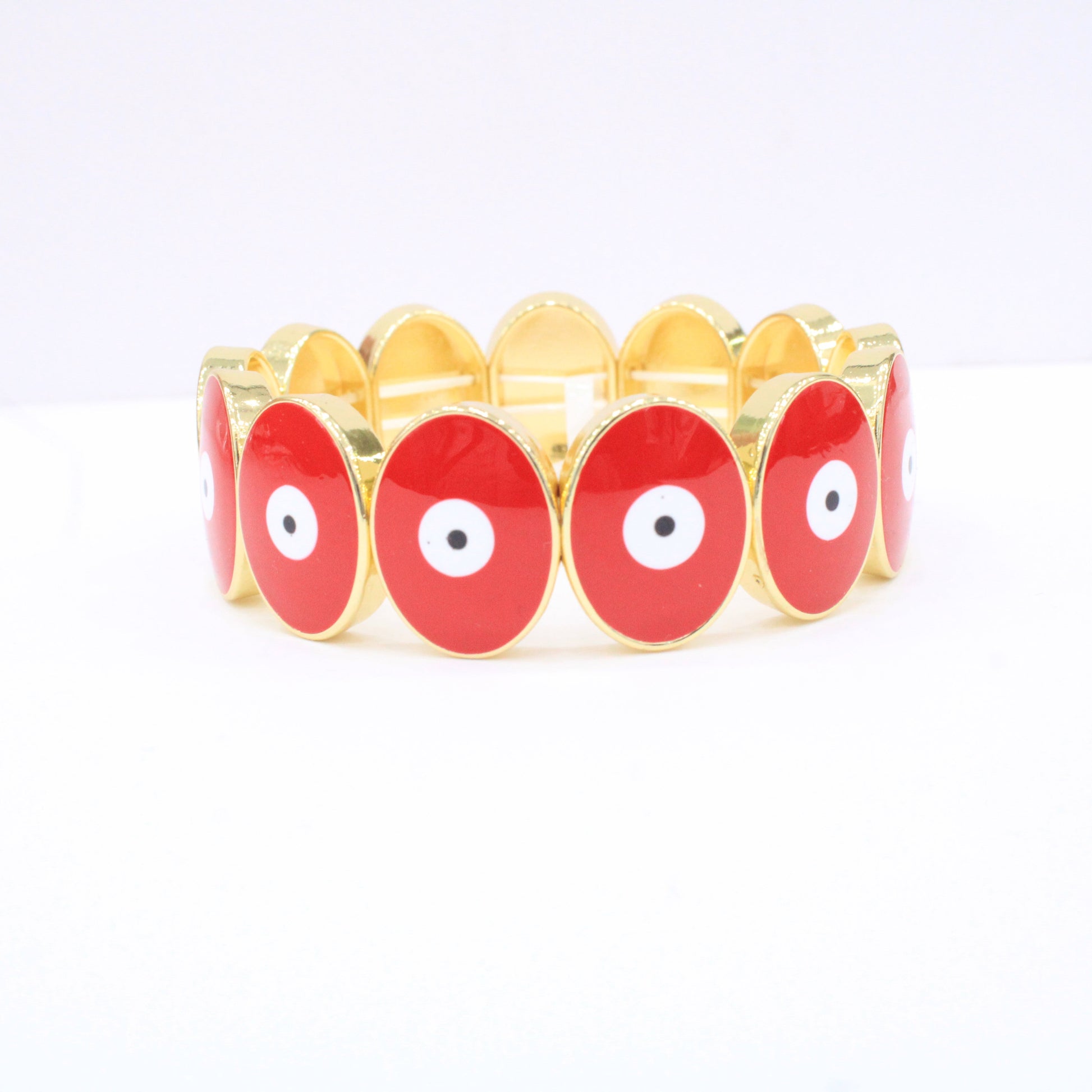 - Pulsera de aro con eslabones de ojo turco color rojo.