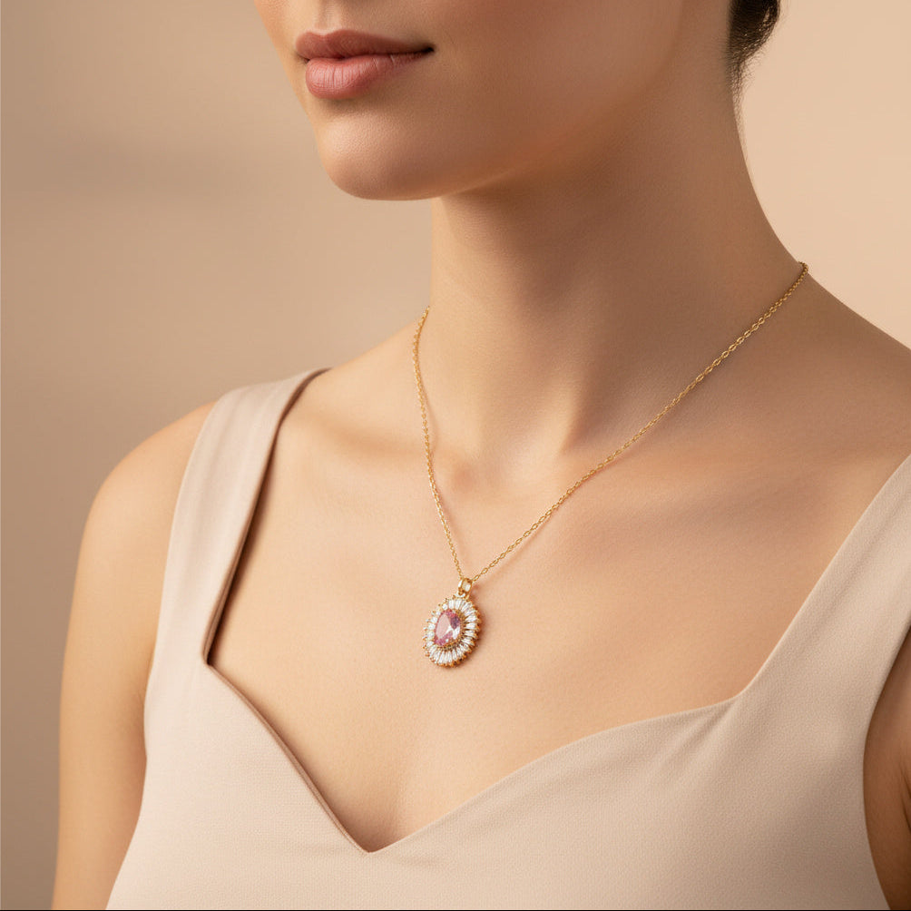 - Gargantilla de diseño fino con brillo sutil y acabado tipo joyería premium.