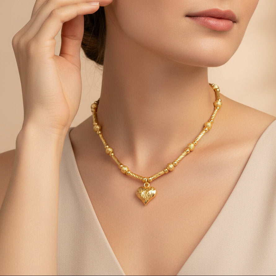 Paquete 2pz Collar de Goldfiled Cuentas Grabadas con Dije Corazón mod. 16011