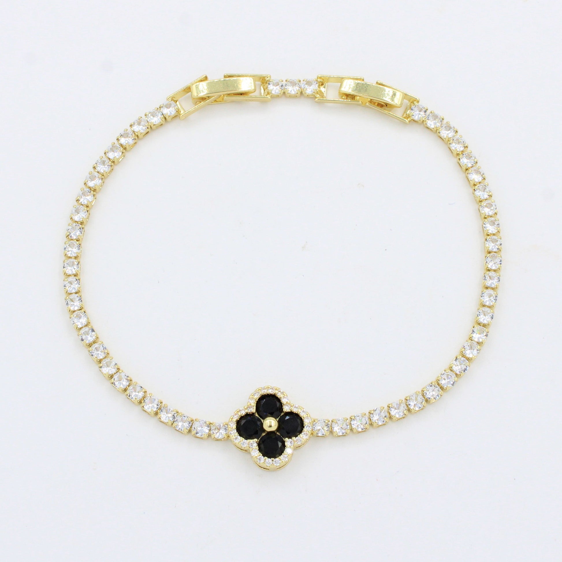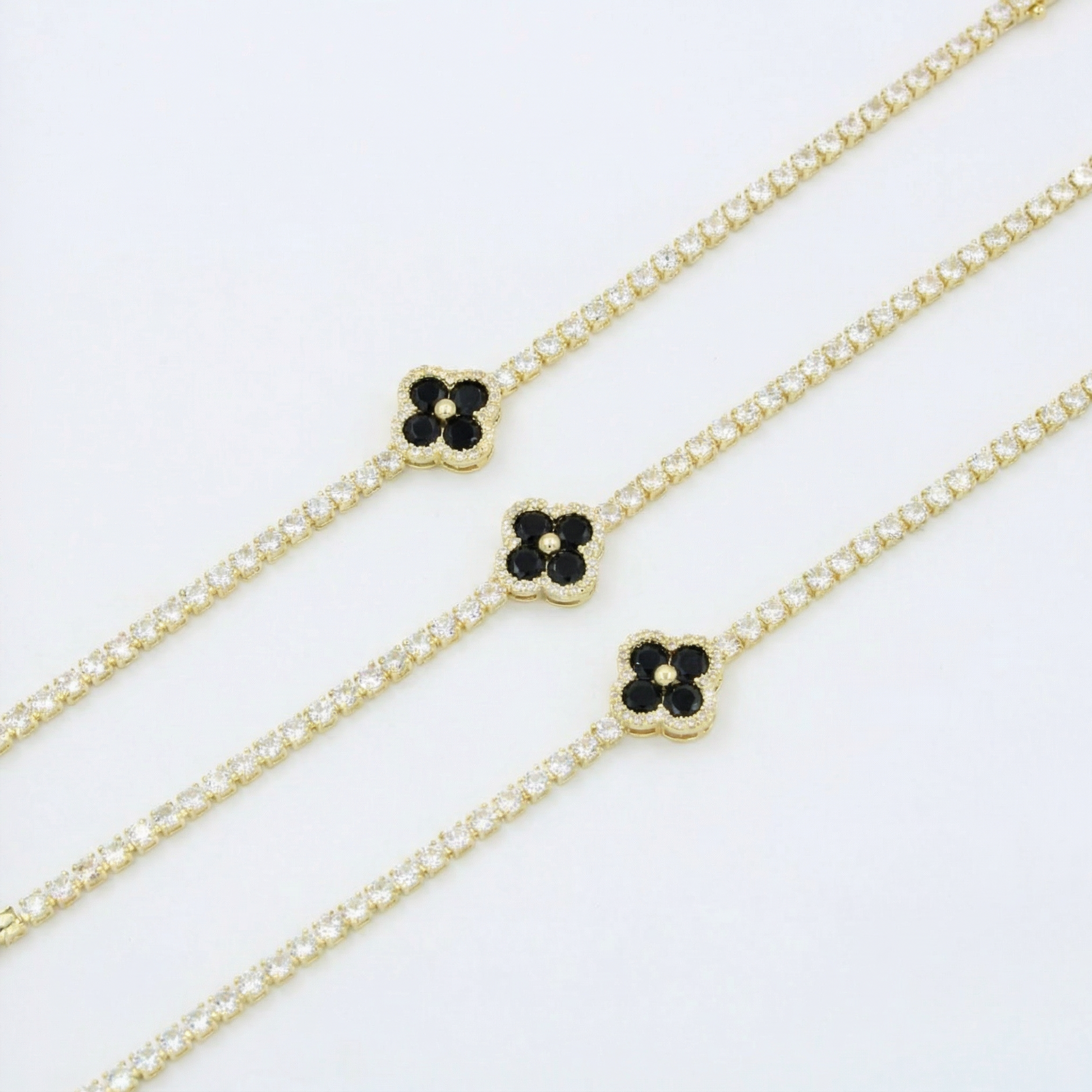 Paquete 3pz Pulsera Goldfilled Trébol Negro mod. 13031
