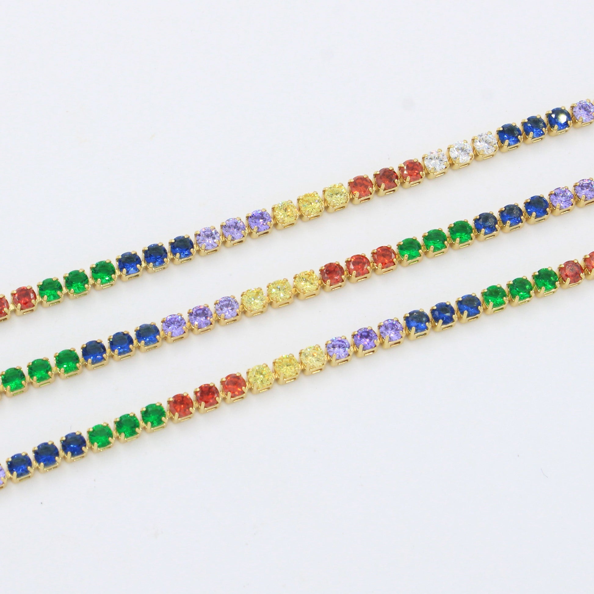 Paquete 3pz Pulseras Goldfilled con Zirconias de Colores mod. 13026