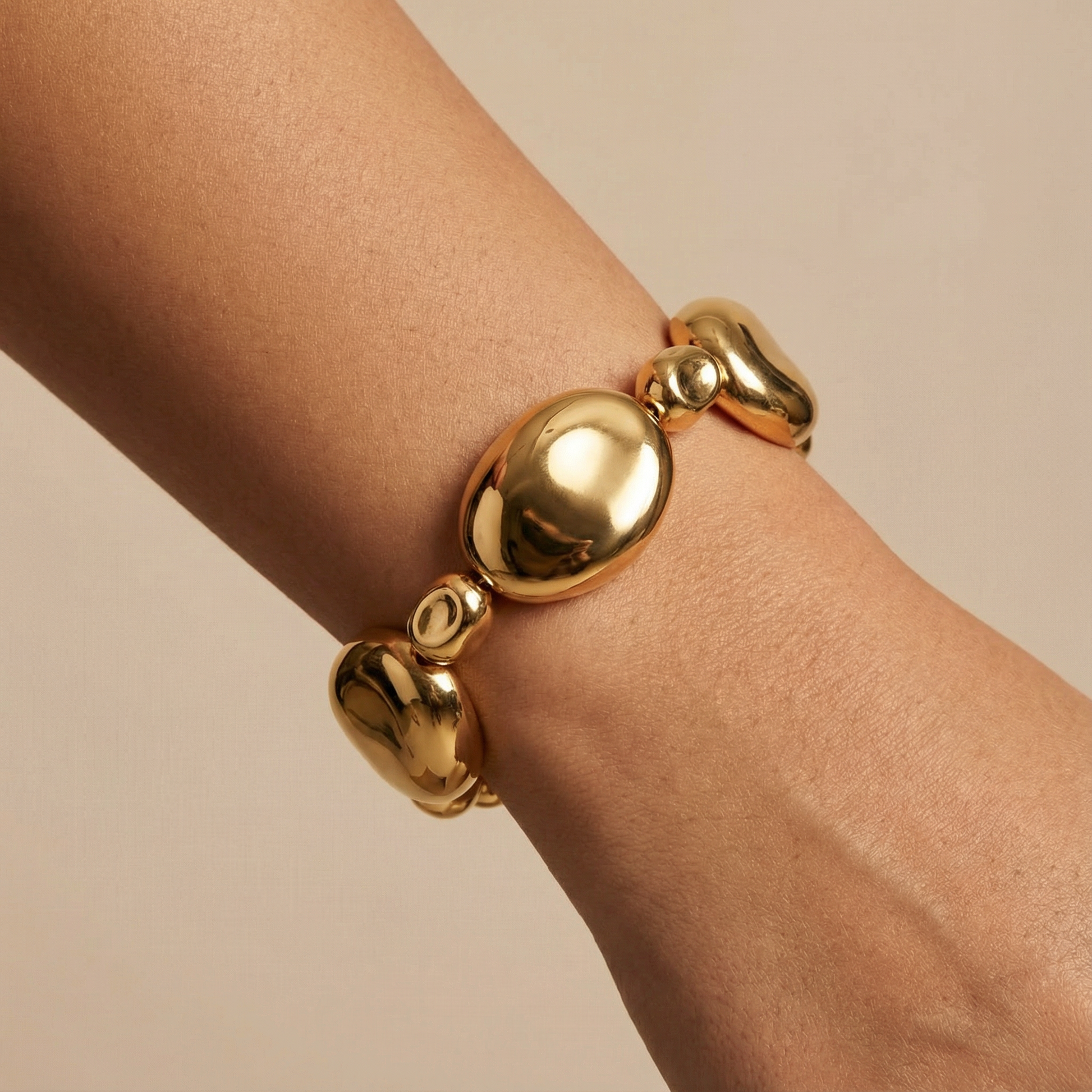 Pulsera en oro laminado de alta calidad, inspirada en la elegancia atemporal y el estilo contemporáneo.